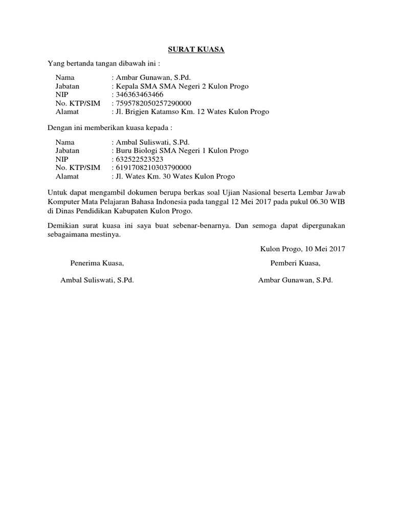 7 Contoh Surat Kuasa Yang Bisa Di Edit Word Angalul Otosection